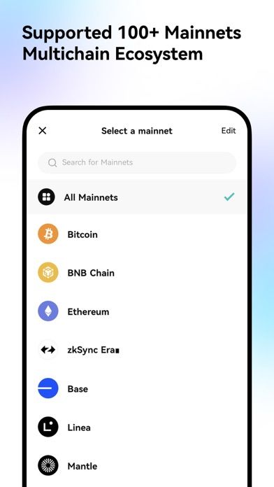Easily switch between different mainnets to manage specific assets like BTC, ETH, SOL, and more.