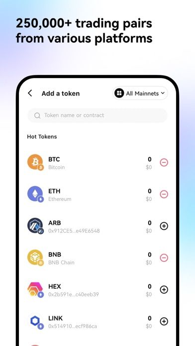 Easily switch between multiple wallets within the app. This feature is useful if you manage separate wallets for different purposes, such as trading, savings, or staking.