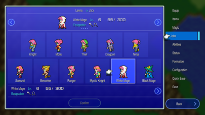 Explore a vast world and engage with its inhabitants to uncover quests and secrets. Use the job system to customize your party's abilities and skills to suit your playstyle. Engage in turn-based combat by selecting commands and strategically using abilities and items. Progress through the story to unlock new locations and challenges. Develop characters through experience gain, equipping new gear and augmenting their skills.