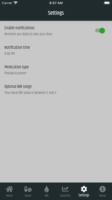 INR Diary is a specialized app designed for individuals who need to monitor their INR levels for health management. This user-friendly application enables users to efficiently track their INR readings and medication dosage, making it an essential tool for patients on anticoagulation therapy. With key features like automatic reminders, detailed history logs, and easy data sharing with healthcare providers, INR Diary stands out as a must-have for managing your health effectively.