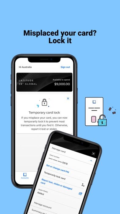 - **Latitude Australia**: Manage a range of products including Latitude GO Mastercard, Latitude Gem Visa, Latitude 28 Degrees Global Platinum Mastercard, and more.