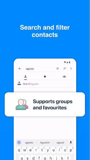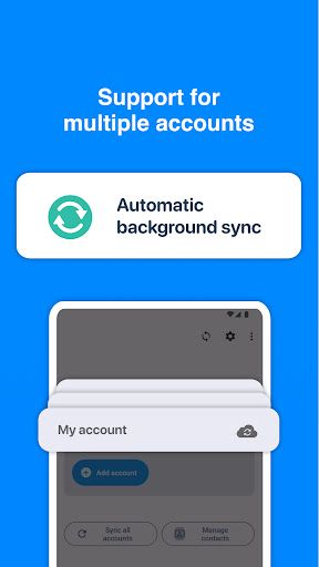 Some versions of the app also allow merging duplicate contacts, adding custom contact information, and setting up automatic sync intervals.