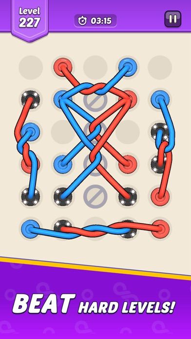 Untangle ropes by strategically moving them to separate intricate knots. Progress through levels that increase in difficulty, offering new challenges. Use hints wisely if you're stuck, but try to solve without them for maximum satisfaction. Experiment with different approaches to find the most efficient solutions. Enjoy the calming satisfaction as each rope puzzle is unravelled.