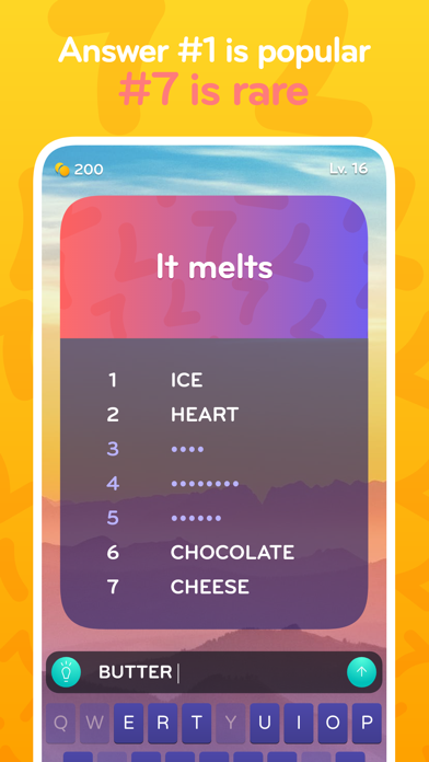 Top 7 is a fun and engaging trivia game where players guess the top 7 answers to various questions. Whether it's about pop culture, history, or general knowledge, you'll need to think fast and come up with the most popular answers. The faster and more accurate you are, the higher your score!
